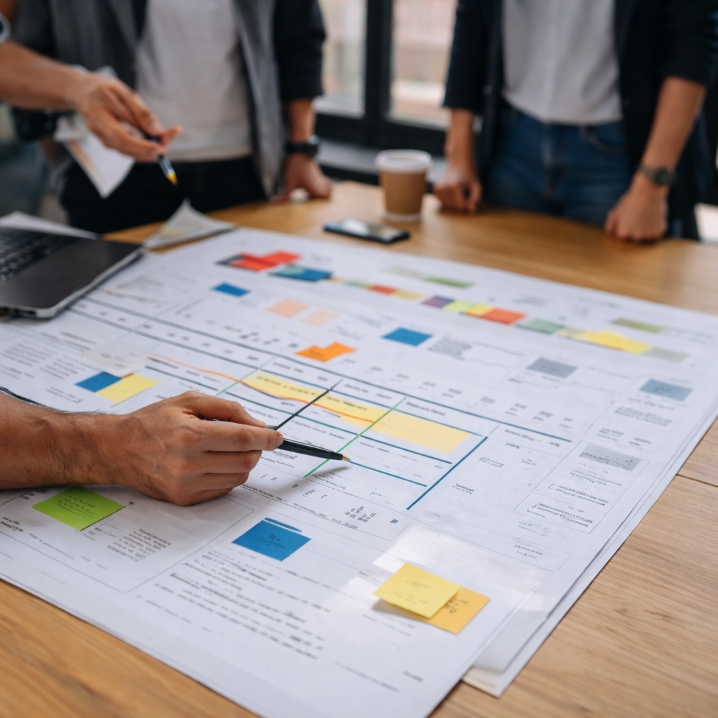 Pilotage structuré en mode agile, coordination des équipes et suivi de l’avancement.